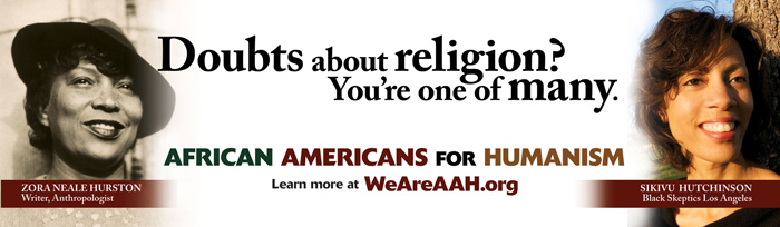 Amherst, New York – January 31, 2012 – African Americans for Humanism (AAH), a program of the Council for Secular Humanism that supports nonreligious African Americans, has launched a national multimedia advertising campaign showcasing religious skepticism in the African American community. Coinciding with Black History Month, the campaign features prominent African American humanists from history along with contemporary activists and organizers.